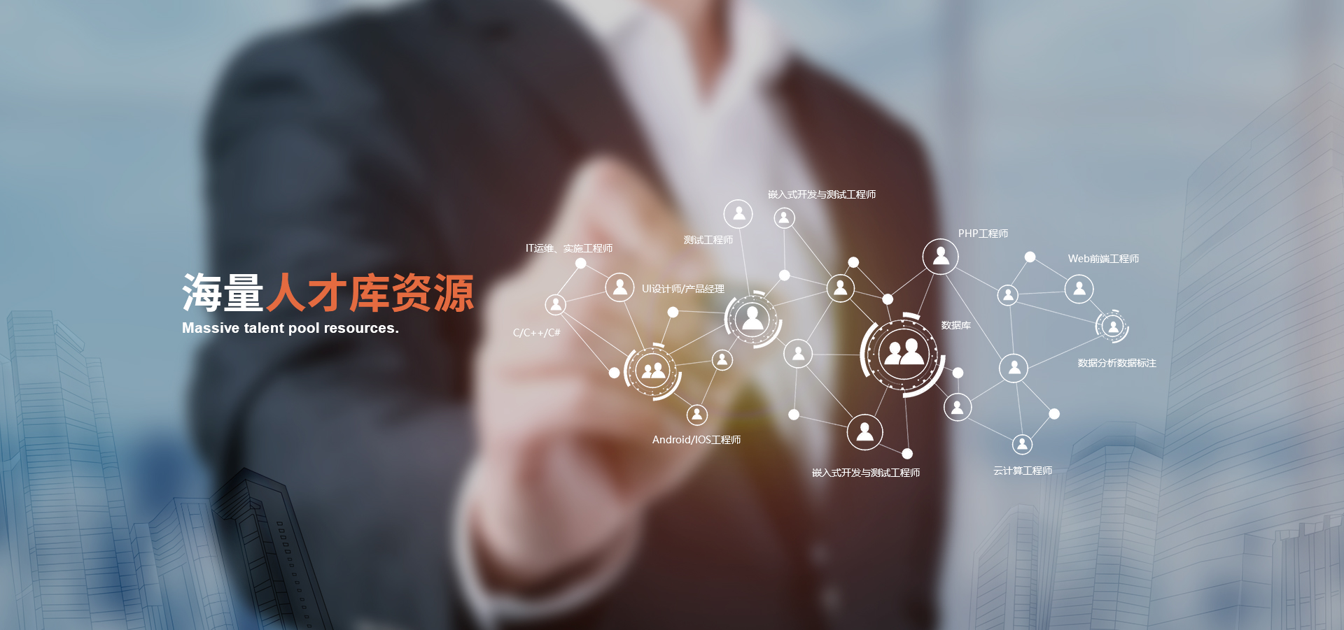 擁有超10萬(wàn)以上的人才儲(chǔ)備;包括專家級(jí)、、資深級(jí)、高級(jí)、中級(jí)等各技術(shù)崗位,能滿足客戶快速用人的需求